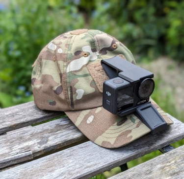 This product is intended to allow DJI Osmo Action 3 or 4 owners to use their cameras in combination with any baseball cap sporting a velcro front patch. Very lightweight and great for vlogging or non-contact sports.
